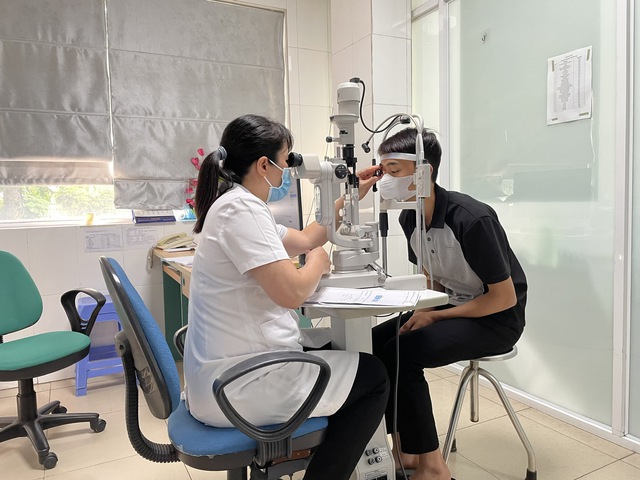 Bác sĩ đang khám cho bệnh nhân T.B.Đ.T trên máy sinh hiển vi[/caption]