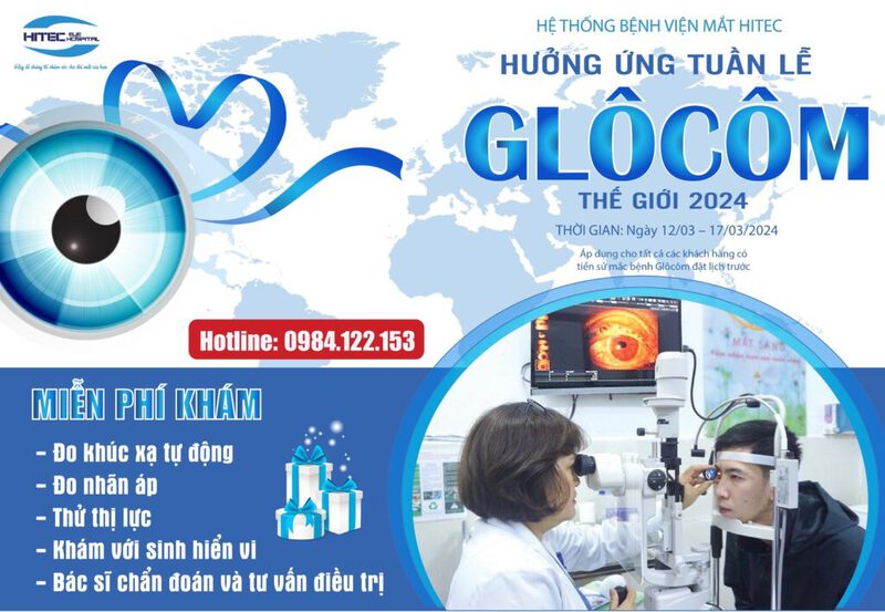 Tuần lễ Glôcôm thế giới năm nay (từ 10 – 16/03/2024) với chủ đề “Đoàn kết vì một thế giới không có bệnh Glôcôm” nhằm mục đích kêu gọi, đoàn kết các cộng đồng trên toàn thế giới lại với nhau để chiến đấu chống lại bệnh Glôcôm, giảm thiểu tình trạng mất thị lực do căn bệnh này gây ra. Glôcôm hay còn gọi là bệnh thiên đầu thống/ cườm nước, là một nhóm bệnh lý gây tổn hại thần kinh thị giác không thể phục hổi. Bệnh nếu không được điều trị hoặc không được kiểm soát, dần trở nặng sẽ gây mất thị lực ngoại vi và dẫn đến mù lòa. Đây là nguyên nhân gây mù lòa đứng hàng thứ hai trên toàn thế giới sau đục thủy tinh thể. Mặc dù, Glôcôm là một bệnh lý nguy hiểm nhưng thường diễn ra vô cùng âm thầm. Đa số người bệnh tới thăm khám tại các cơ sở y tế ở tình trạng đã xuất hiện những cơn đau nhức hoặc khi thị lực đã suy giảm trầm trọng. Ở giai đoạn muộn, việc điều trị bệnh chỉ còn mang tính kiểm soát triệu chứng đau nhức, ít khả năng có thể phục hồi thị lực. Do đó, việc thăm khám định kỳ, tầm soát để phát hiện bệnh rất cần thiết với những người trong nhóm nguy cơ cao nhằm tránh bỏ lỡ "thời điểm vàng" trong điều trị. Hưởng ứng tuần lễ Glôcôm Thế Giới, Hệ Thống Bệnh Viện Mắt HITEC thực hiện chương trình “Tặng gói khám mắt cơ bản miễn phí trị giá 250.000 đ cho bệnh nhân có tiền sử mắc bệnh Glôcôm”. Thời gian: Ngày 12/03 – 17/03/2024 Địa chỉ áp dụng khám: