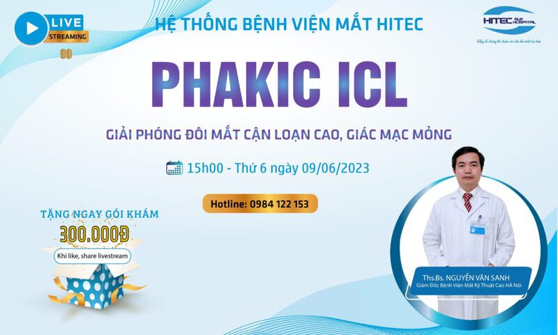 Mời quý khán giả đón xem Livestream số 90 tuần này lúc 15h00 ngày 09/06/2023 trên fanpage của Hệ thống Bệnh viện Mắt Hitec với sự hỗ trợ từ chuyên gia nhãn khoa Ths.Bs Nguyễn Văn Sanh - Giám đốc Bệnh viện Mắt Kỹ Thuật Cao Hà Nội.