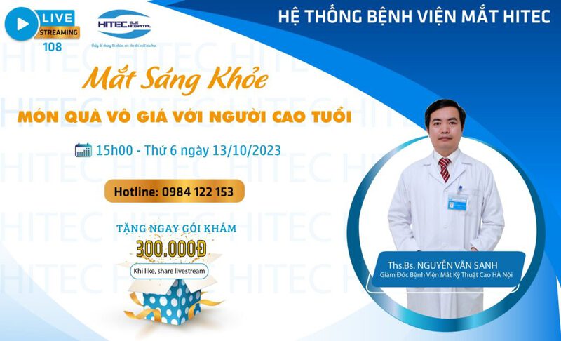 Đón xem livestream 108 vào lúc 15h ngày 13/10/2023 để hiểu rõ hơn về một số bệnh lý tại mắt thường gặp ở người cao tuổi.