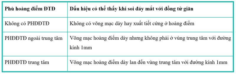 – Phù hoàng điểm: phát hiện trên sinh hiển vi như một vùng gồ lên và mờ đi của các lớp võng mạc.