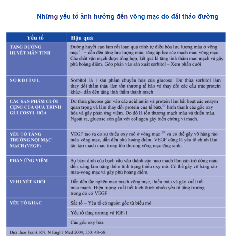 Ngoài ra, những yếu tố ảnh hưởng đến võng mạc do đái tháo đường gây ra như sau: