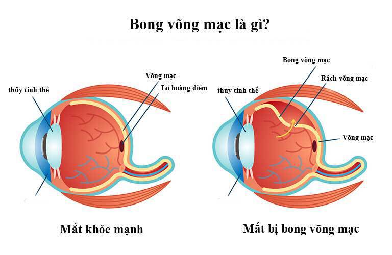 - Bong Võng mạc xảy ra khi trên VM có một hoặc nhiều vết rách. Chất dịch trong mắt sẽ chảy vào lỗ rách và tách dần VM ra khỏi lớp mô hỗ trợ phía bên dưới.
