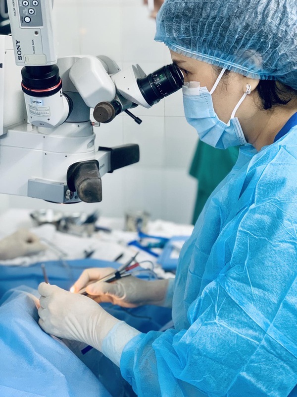 ThS. BS. Nghiêm Thị Hồng Hạnh - Giám đốc bệnh viện chuyên khoa mắt Hitec - cơ sở 55 Hàm Long, đang thực hiện ca phẫu thuật Phaco cho bệnh nhân.[/caption]