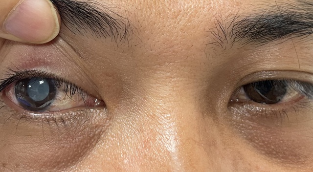 Hình ảnh người bệnh có mắt phải bị đục thủy tinh thể[/caption]
