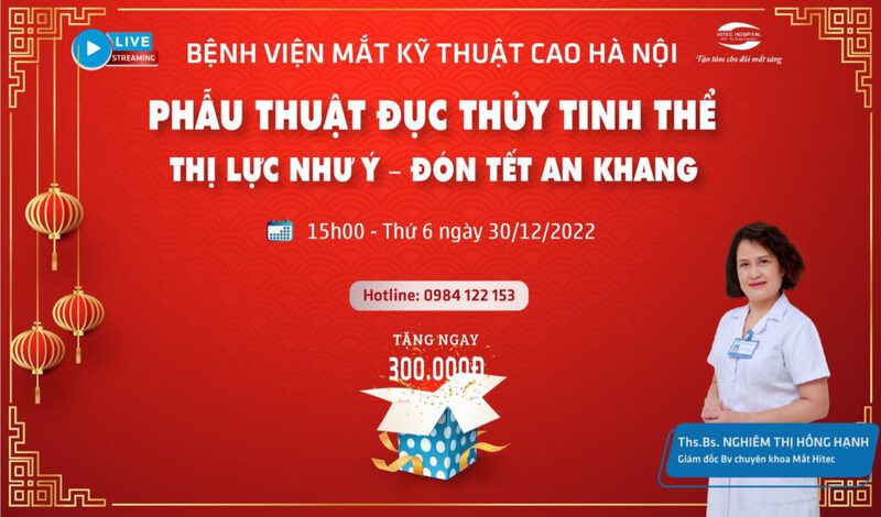 Nhân dịp năm mới Quý Mão đang đến gần, Bệnh Viện Mắt Kỹ Thuật Cao Hà Nội mong muốn giúp bạn tìm lại THỊ LỰC NHƯ Ý – ĐÓN TẾT AN KHANG với phương pháp phẫu thuật PHACO điều trị đục thủy tinh thể trong chương trình livestream tuần này.