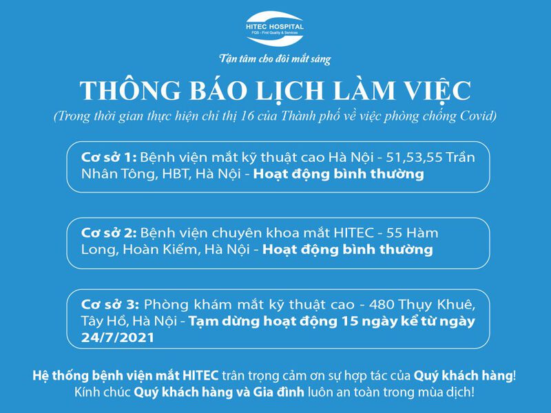 Hệ thống bệnh viện mắt HITEC trân trọng cảm ơn sự hợp tác của Quý khách hàng! Kính chúc Quý khách hàng và Gia đình luôn an toàn trong mùa dịch!