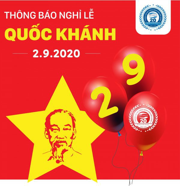 Hệ thống của chúng tôi sẽ hoạt động bình thường vào ngày 3/9/2020. Cảm ơn Quý khách hàng đã luôn tin tưởng và ủng hộ Hệ thống bệnh viện trong suốt thời gian vừa qua. Kính chúc toàn thể Quý khách hàng và gia đình một kỳ nghỉ Lễ vui vẻ!